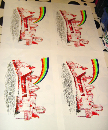 Elle déboule avec un projet de taille à partir d'un montage de ses photos de ville, format 50x80cm !!! C'est le moment de sortir la racle géante ^^